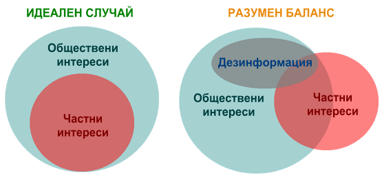 Реално личните и обществените интереси рядко се хармонизират. В този случай се зараждат дезинформационнни процеси, чиято задача е да възстановят нарушеният баланс. Тези процеси имат субективен характер, с всички произтичащи от това последствия.
